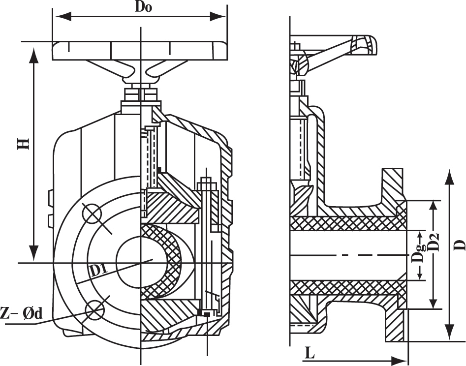 2工作原理:當順轉手輪時,使大小閥桿同時帶動上下閘板,壓縮管套,進行關閉,反轉即行開啟,這樣,閘板在導柱之間上下往復完成閥門開閉工作。另外,因橡膠管套承力,因此在開關時,操作人員旋轉手輪時只要感到適量抵觸,均己達到開閉極點,切勿盡力或多人輔助,禁用其他工具開閉。